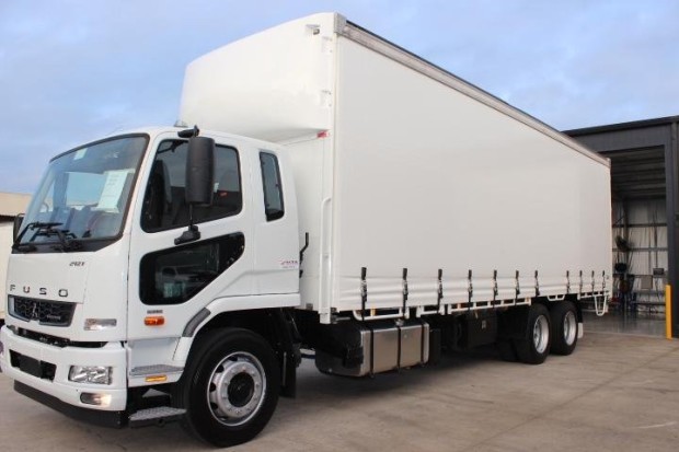IN STOCK IS THIS NEW FUSO FIGHTER 2427 AUTOMATIC 14 PALLET CURTAINSIDER