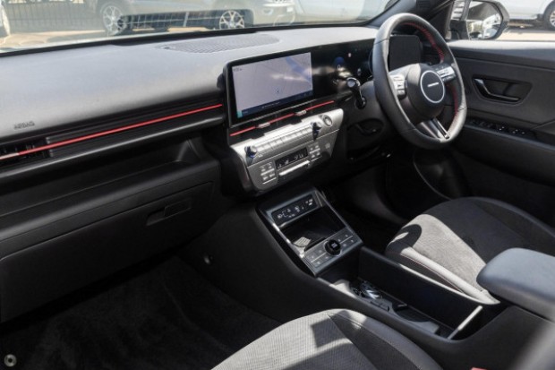 Meet the 2025 Hyundai KONA Premium N Line—a small SUV designed for those who crave style, efficiency, and comfort. Dressed in a sleek Cyber Grey, this nimble vehicle echoes sophistication with its glossy red trim. Underneath its striking exterior lies a 2.0-litre, 4-cylinder engine that pairs seamlessly with a 1-speed CVT transmission. Offering front-wheel drive, it ensures smooth and responsive handling around every corner.The KONA's spacious interior comfortably seats up to five passengers, making it ideal for both family adventures and solo road trips. With five doors, accessing the roomy cabin is hassle-free, whether you're loading up for a weekend getaway or simply heading to the shops. The attention to detail is apparent in every stitch, ensuring an experience of luxury and practicality every time you take the wheel.