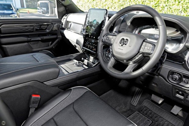 Step inside this spacious 5-seater, where sophistication meets practicality. Premium materials and cutting-edge technology offer uncompromised comfort for every journey, from city driving to off-road adventures. The RamBox cargo management system provides versatile storage solutions, ensuring you're ready for any task or escape.