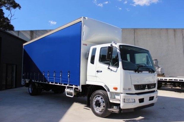 2019 FUSO FIGHTER 1627 AUTOMATIC WITH 2 TONNE TAILGATE LOADER EX LONG TERM LEASE UNIT LOW KM ALLISON AUTOMATIC BRAND NEW CURTAINS SOLD WITH RWC 3 MONTH REG 270 HP 12 PALLET REAR AIR SUSPENSION