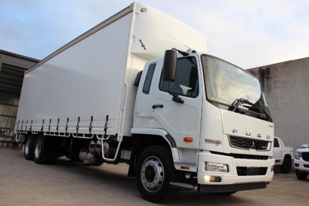 IN STOCK IS THIS NEW FUSO FIGHTER 2427 AUTOMATIC 14 PALLET CURTAINSIDER