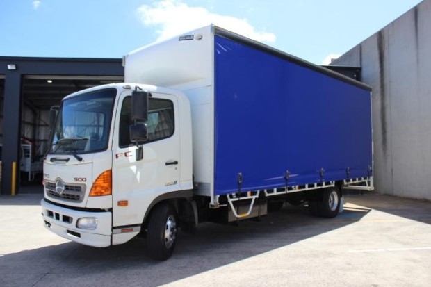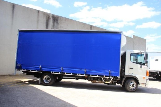 ARRIVING SOON IS THIS ONE OWNER HINO FC 500 CURTAINSIDER