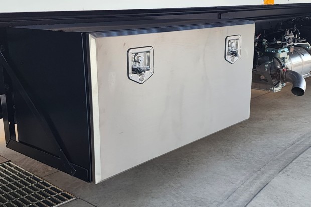 Dual stainless steel tool box's on the tray as well as chassis mounted tool box's on either side.