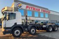 2011 SCANIA P 400 8X4 , 400 HP AUTO TRANSMISSION ON AIR BAG SUSPENSION. DAY CAB FITTED WITH A HYVALIFT 22/58SKE HOOK LIFT SYSTEM AND SET UP WITH A TRAILER HITCH.