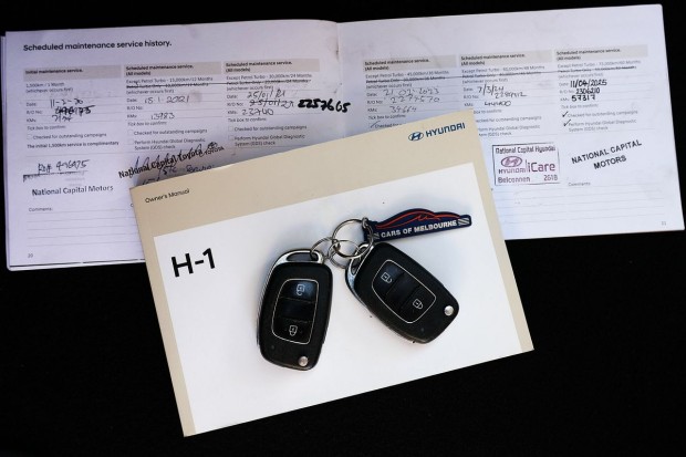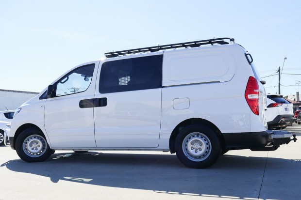 Hi there, thanks for checking out our vehicle online, would you like to know a bit more about it and our dealership? Simply send us a message via text, email, or phone, and we will be in contact with you shortly to discuss getting you into your next vehicle today!Some of our Highlighted Features on this vehicle include TRADESMAN STEP WITH TOW BAR, TRADESMAN ROOF RACK WITH LADDER ROLLERS, REAR SHELVING, NUDGE BAR, FULLY ENCLOSED CARGO BARRIER, REVERSE CAMERA, APPLE CAR PLAY & ANDROID AUTO, CRUISE CONTROL, USB INPUT, BLUETOOTH, 2x KEYS and an EXCELLENT HYUNDAI Service History.